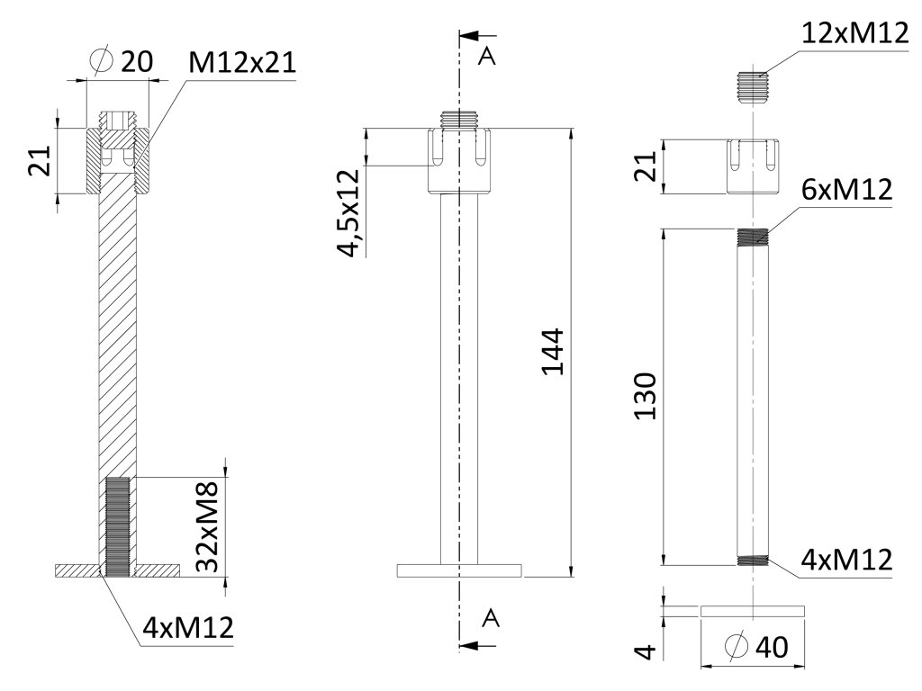 Príruba na stenu pre dve lanká ø 4 mm, brúsená AISI 304