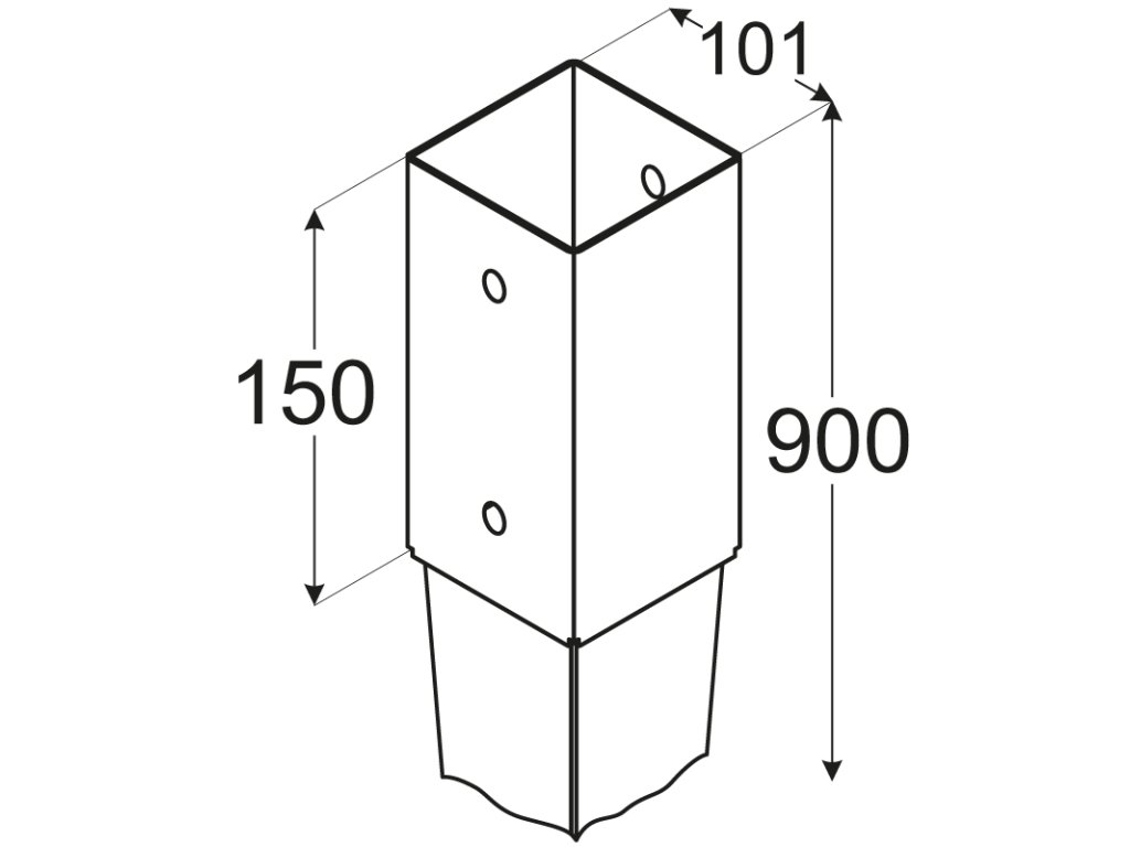 Pätka nabíjacieho/kotevného stĺpa 101 x 150 x 900 mm, 1,8 mm žiarovo pozinkovaná, počet otvorov 11 mm - 4 ks