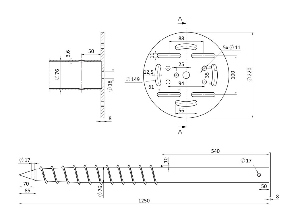 Zemný vrut, stavebná pätka, ø 220 mm, žiarový pozink