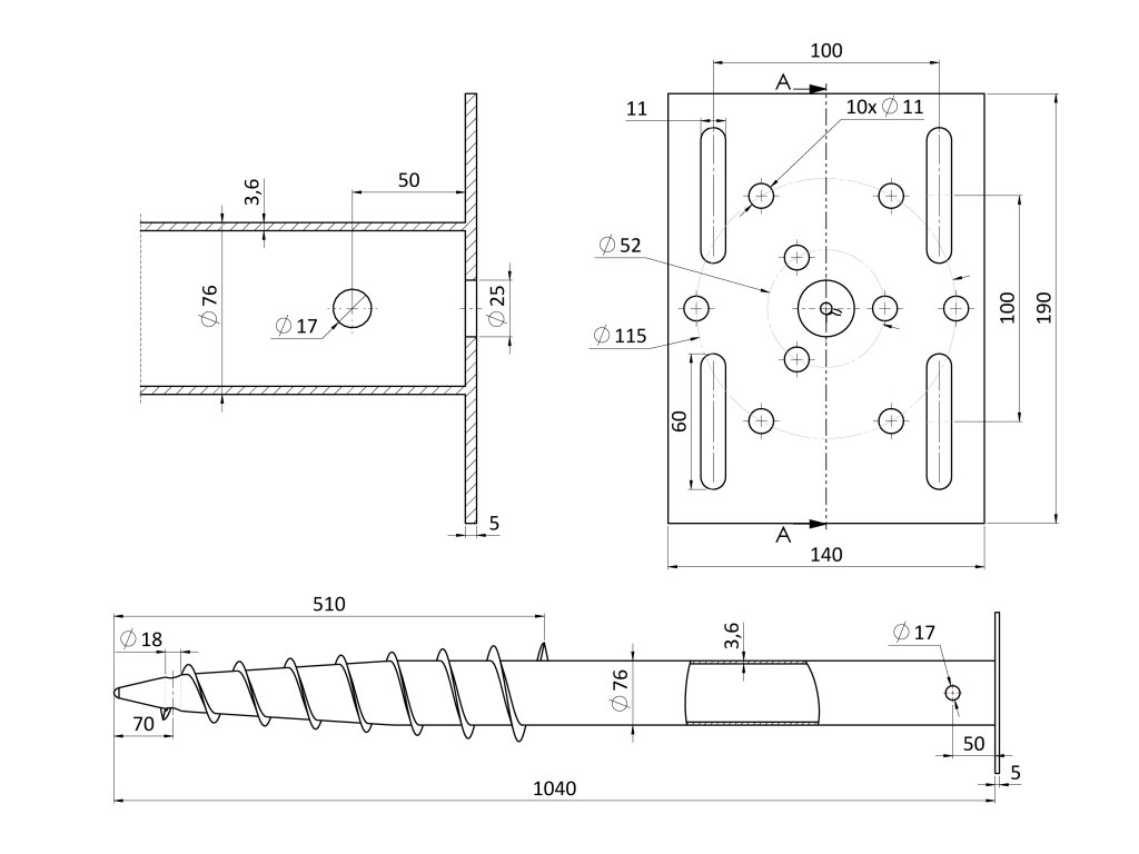Zemný vrut, stavebná pätka, 190 x 140 mm, žiarový pozink