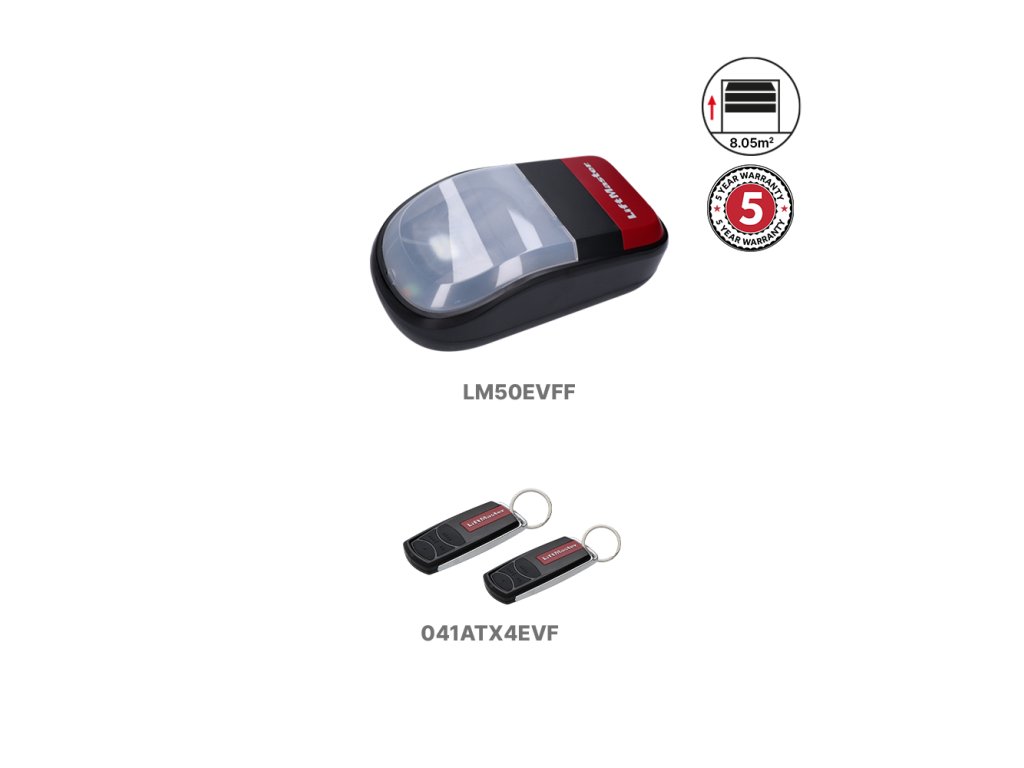 LiftMaster LM50EVFF1 je kompaktný a spoľahlivý 24V pohon pre garážovú sekčnú bránu do hmotnosti 80 kg, so šírkou brány do 3,5 metra, s výškou brány 2,3 metra. Pohon má integrované LED osvetlenie a kompaktný, moderný dizajn. Pohon podporuje technológiu myQ, ktorá umožňuje ovládanie brány odkiaľkoľvek prostredníctvom smartfónu, tabletu alebo počítača.