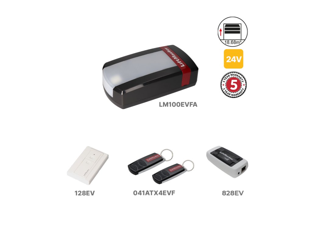 LiftMaster LM100EVFA je výkonný 24 V pohon určený pre garážové sekčné brány s hmotnosťou do 150 kg a maximálnymi rozmermi 5,75 m (šírka) × 3,25 m (výška). Vďaka rýchlosti otvárania a zatvárania 200 mm/s ide o jeden z najrýchlejších pohonov vo svojej triede. Navyše, s predĺženou zárukou 8 rokov na elektromotor získavate maximálnu spoľahlivosť a dlhodobú istotu.