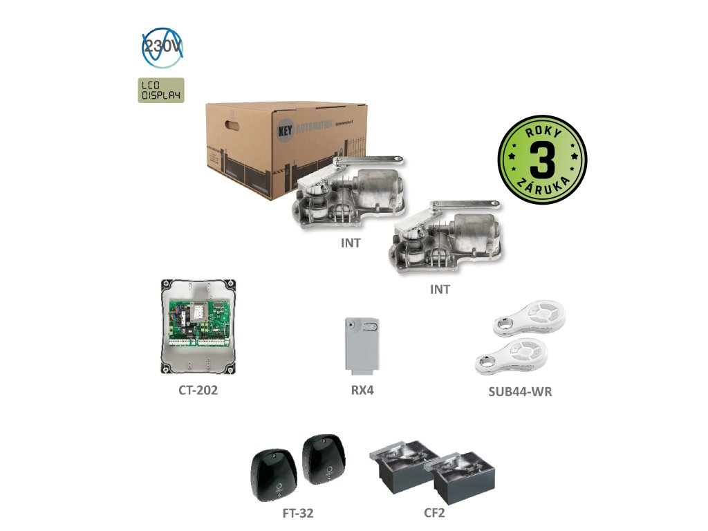 UNDERKIT podzemný pohon so základovou krabicou pre krídlovú bránu do 3m/krídlo, 1x CT202, 1x RX4, pár FT-32, 2x SUB-44WR
