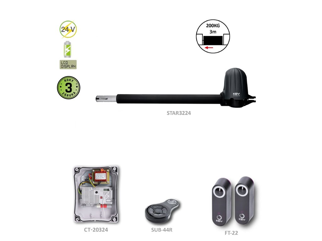 STAR3224 pravý pohon pre jednokrídlovú bránu do 2m/krídlo, 1x STAR3224-P, 1x CT-20324, 1 pár FT-22, 1x SUB-44R