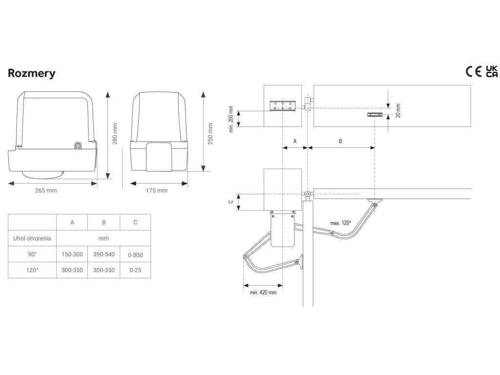 - Bezpečnosť: Pohon bezpečne uzatvorí bránu bez potreby elektrického zámku. Pri výpadku prúdu je zabezpečený mechanickou brzdou.