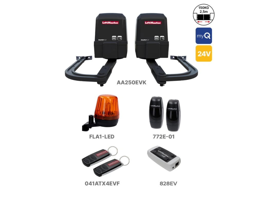 LiftMaster AA250EV je bezúdržbový 24V pohon určený pre rezidenčné krídlové brány so šírkou krídla do 2.5m na každé krídlo. Tento pohon je ideálny pre brány osadené na širokom stĺpe a podporuje technológiu myQ, ktorá umožňuje ovládanie brány odkiaľkoľvek prostredníctvom smartfónu, tabletu alebo počítača. LiftMaster AA250EV ponúka spoľahlivosť, moderný dizajn a jednoduchú montáž.
