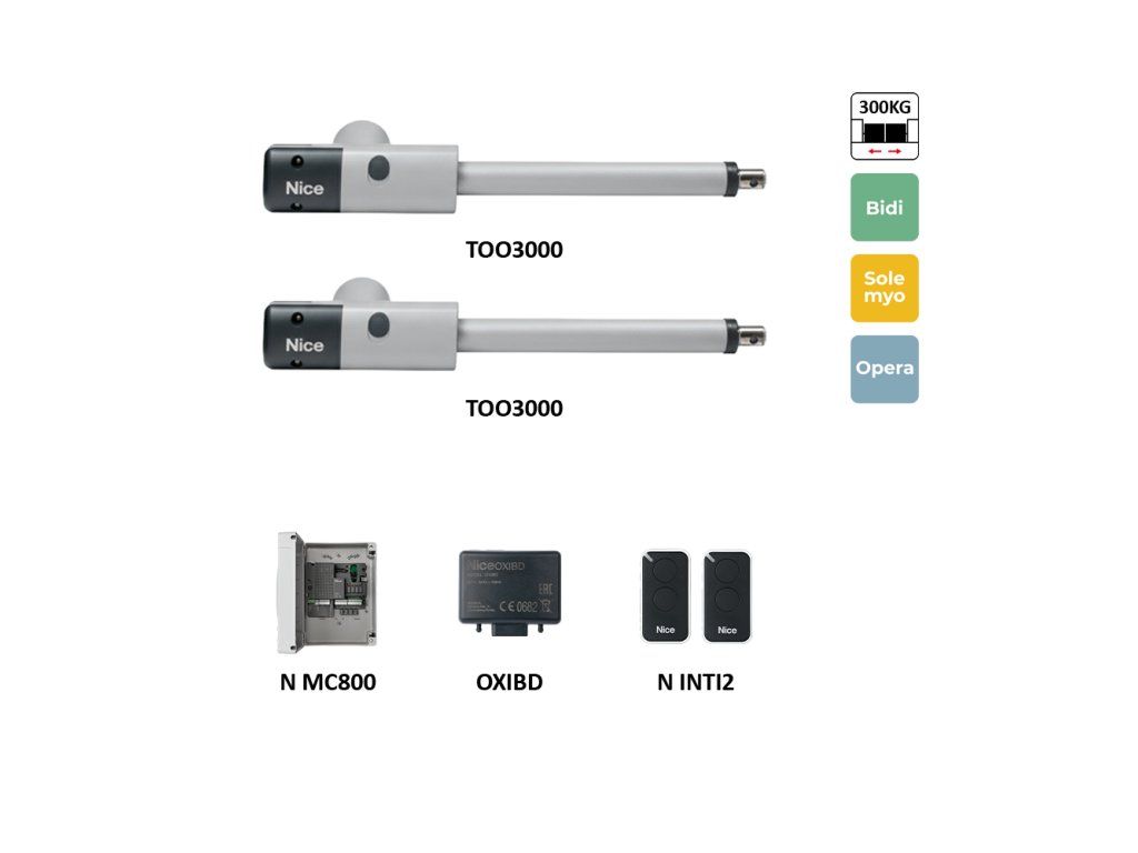 TOO3000KLT je sada pohonov pre automatizáciu dvojkrídlových brán s dĺžkou krídla do 3 metrov.