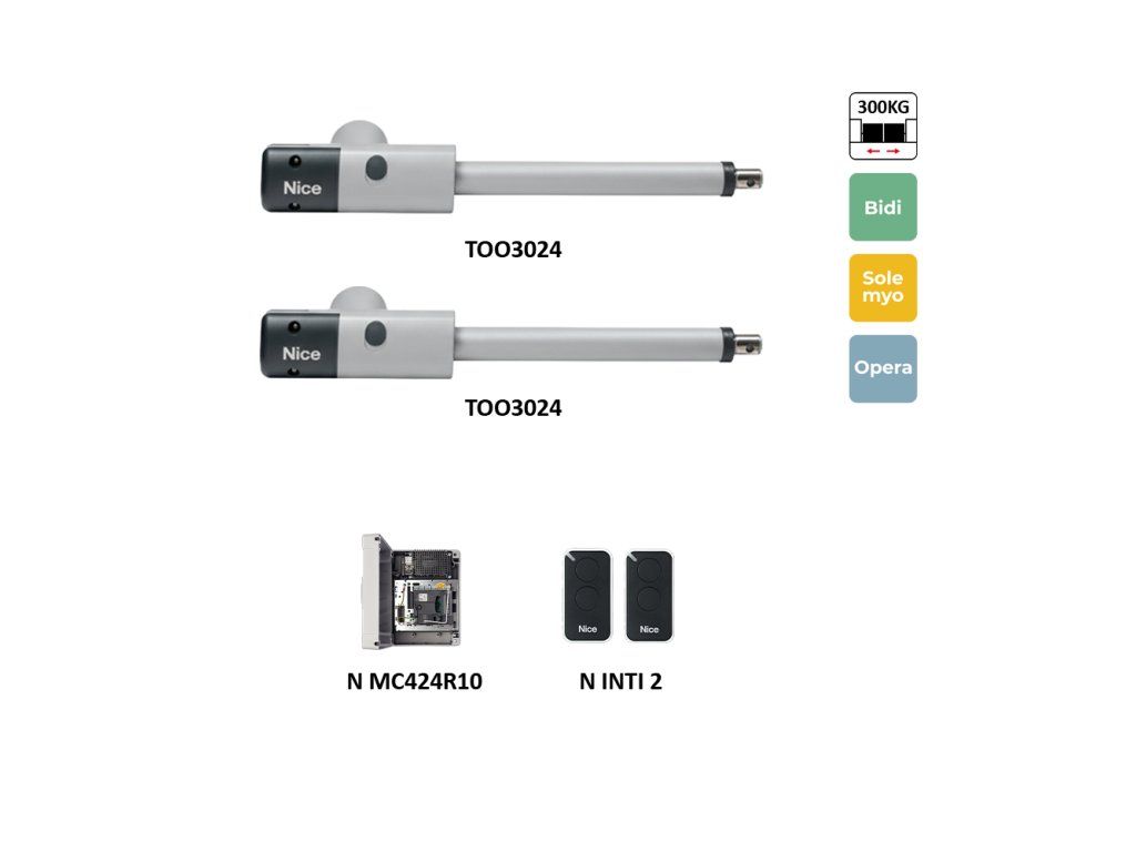 TOO3024KLT je sada pohonov pre automatizáciu dvojkrídlových brán s dĺžkou krídla do 3 metrov.