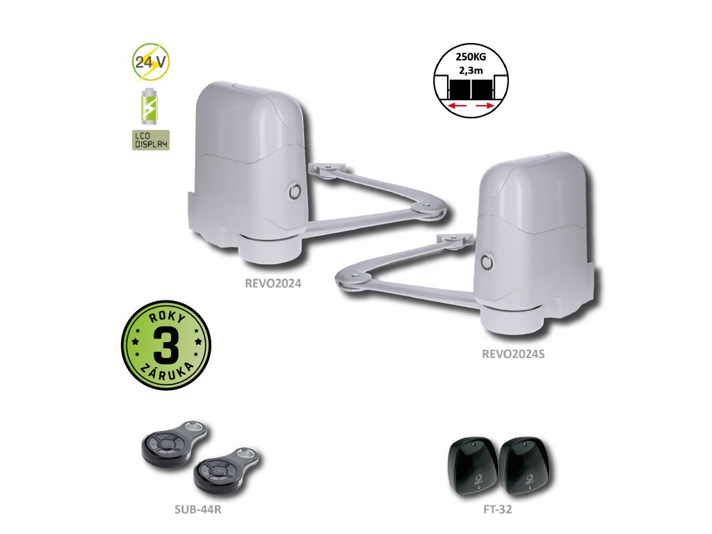 900KREP2224KS - REVOKIT pre dvojkrídlovú bránu do 2.3m / krídlo, 1x REVO2224, 1x REVO2224S, 2x SUB-44R, 1x CT-202 24, 1 pár FT-32, RX4Y (integrovaný)