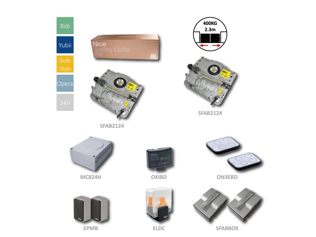 SFAB2124BDKCE Podzemná sada pre dvojkrídlovú bránu do 2,3m/krídlo magnetický enkóder, 2x SFAB2124 (24 V, 120 W, 250 Nm), 1x MC824H, 2x ON3EBD, 1x OXIBD, 1 pár EPMB, 1x ELDC, 2x SFABBOX