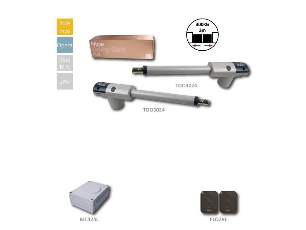 TOO3024KLT je sada pohonov pre automatizáciu dvojkrídlových brán s dĺžkou krídla do 3 metrov.