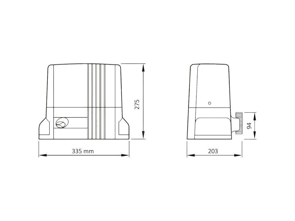 THOR motor pro posuvné brány do 1500 kg, 230V, 400W, 800N, 1x el. ROA37, 2x INTI2, mechanický koncový spínač