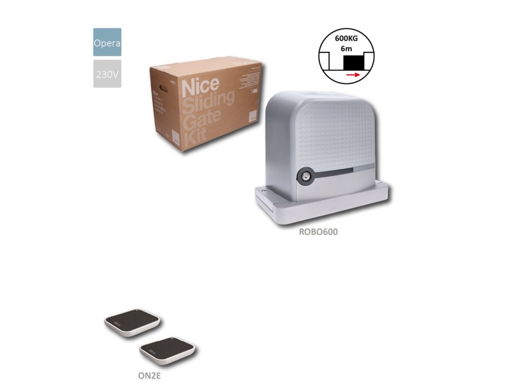 Sada pre posuvnú bránu do 600kg, 1x ROBO600R10 (230V, 300W, 600N), s zabudovanou riadiacou jednotkou, so zabudovaným prijímačom, 2x ON2E