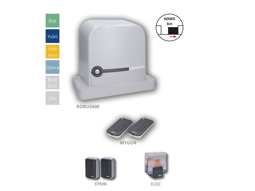 Robus600 je výkonný a spoľahlivý automatický pohon určený pre posuvné brány s maximálnou hmotnosťou až 600 kg. Tento model od spoločnosti NICE ponúka kombináciu vysokej rýchlosti, výkonu a bezpečnosti, čo z neho robí ideálnu voľbu pre rezidenčné aj komerčné použitie.