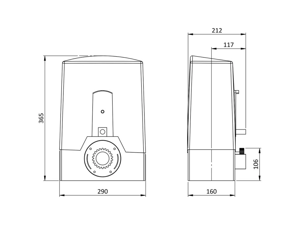 - Kryt RAL7024-sivý: Elegantný a odolný kryt chráni pohon pred vonkajšími vplyvmi.