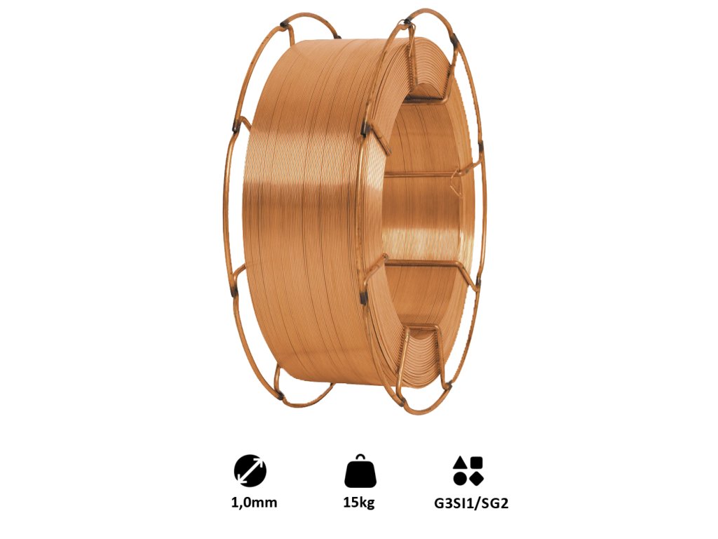 Zvárací drôt ø 1.0mm-MIG/MAG(CO2), G3Si1/SG2 je bežný drôt, určený na zváranie ocele. Drôt má vynikajúce vlastnosti, ktoré umožňujú použitie na rôzne druhy ocele. Je navinutý na kovovú cievku, čo umožňuje jednoduché použitie a skladovanie.